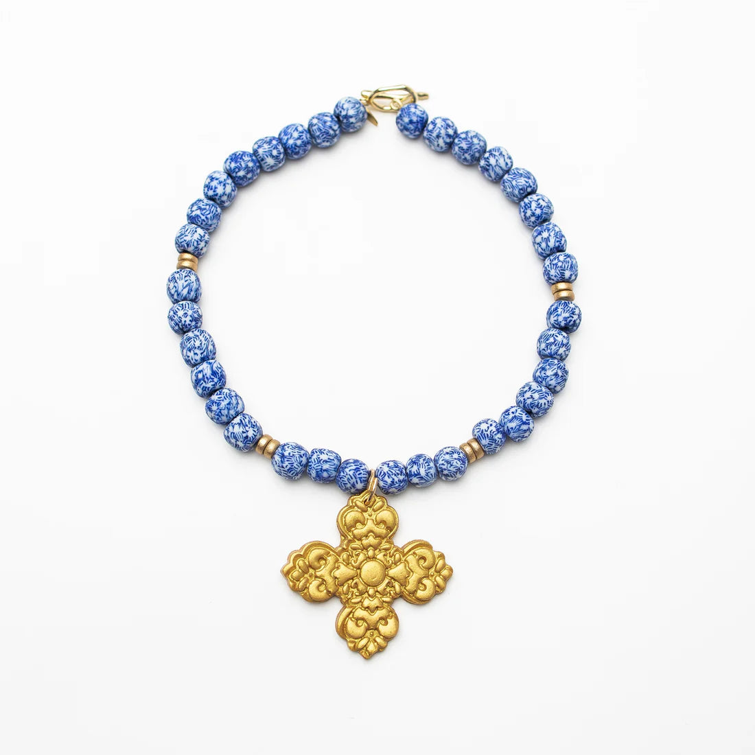This bold and beautiful blue and white African Recycled Glass bead will help you be reminded you can be bold in your faith in Jesus Christ. Let go of fear and trust God is able to help you!