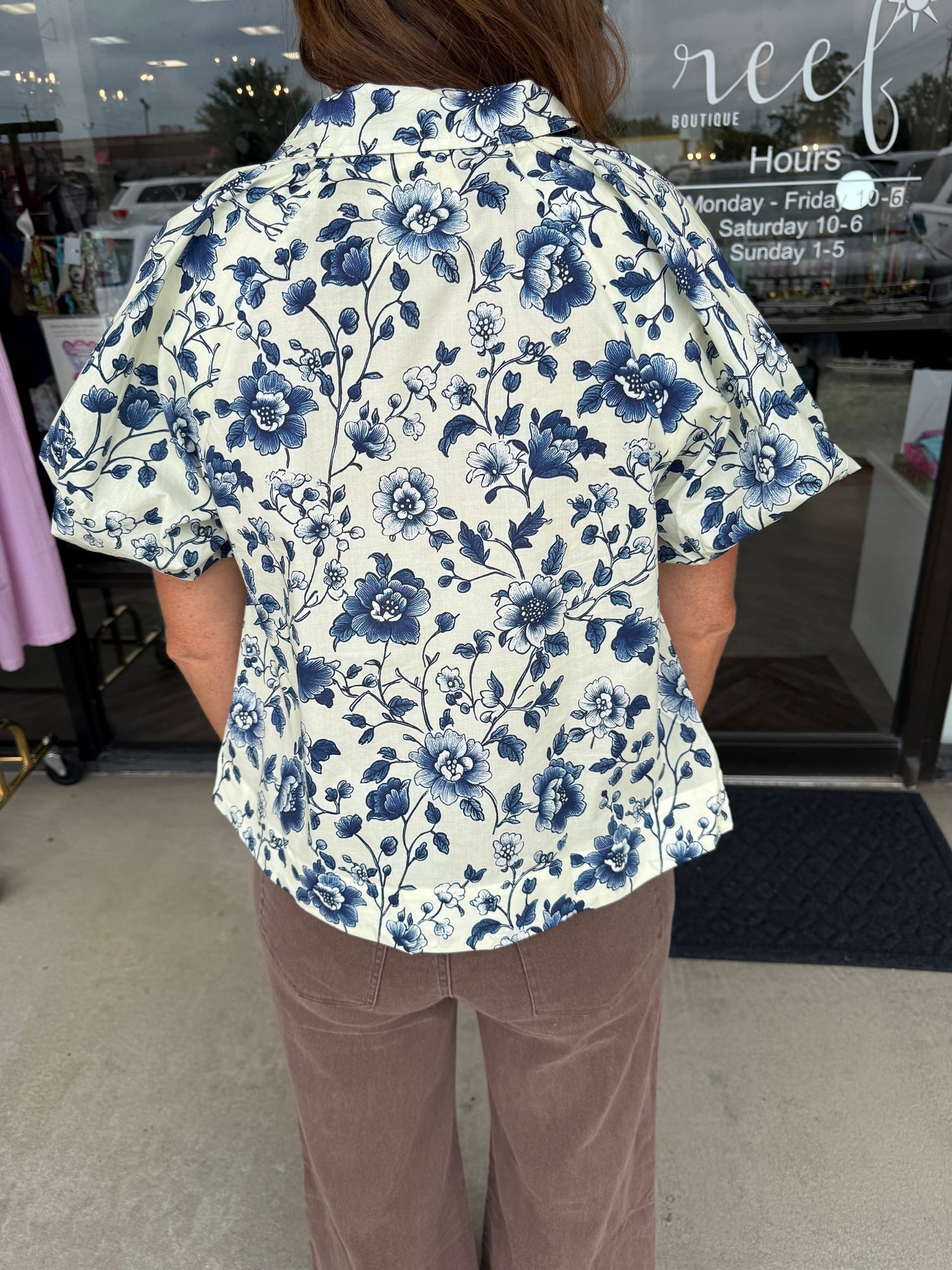 Blue Flower Button Top