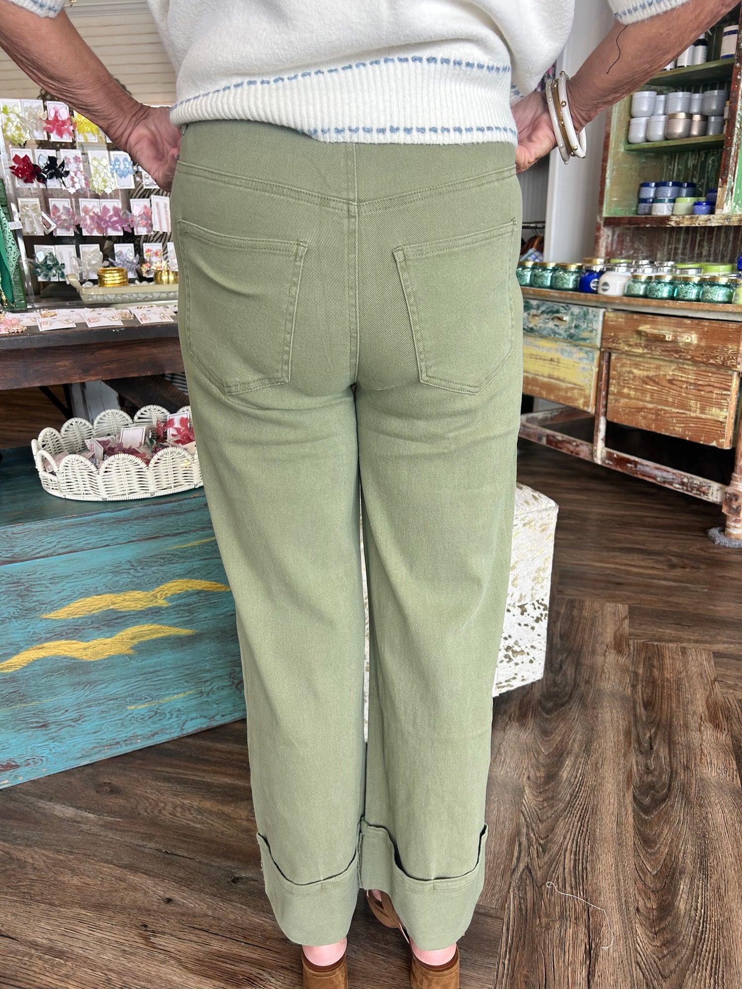 Cuffed Olive Denim Pants