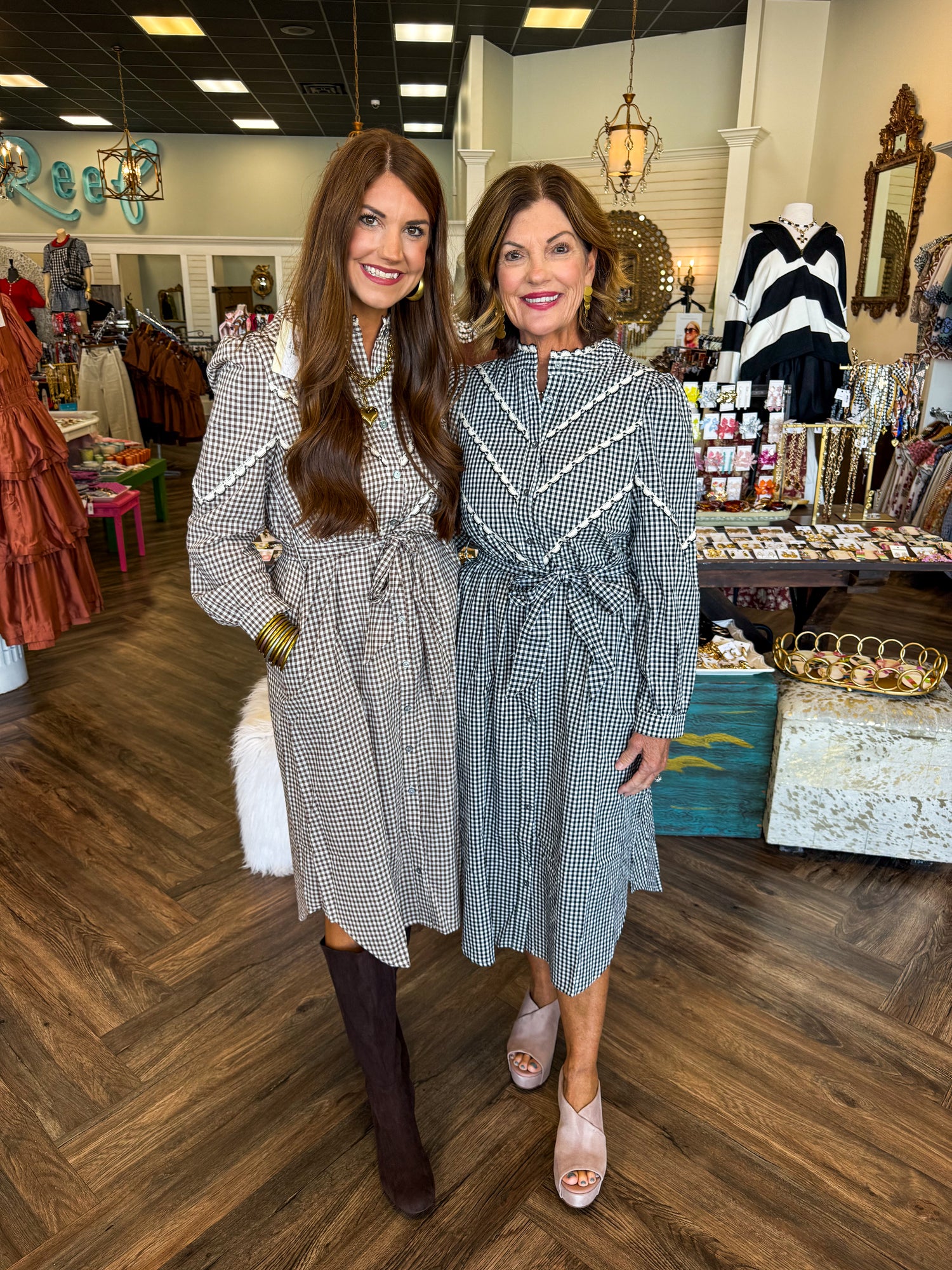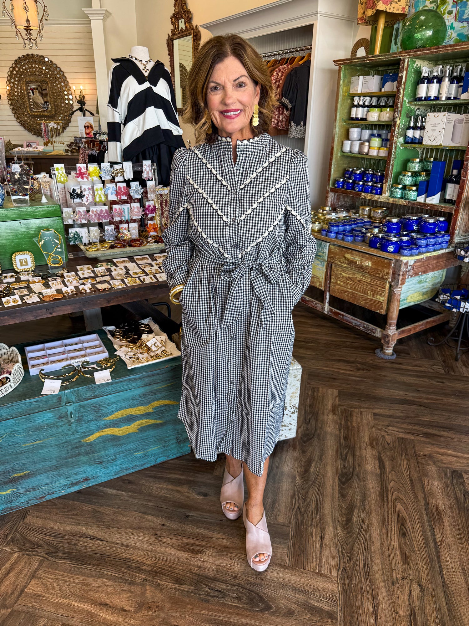 Dani Gingham Midi Dress: Black