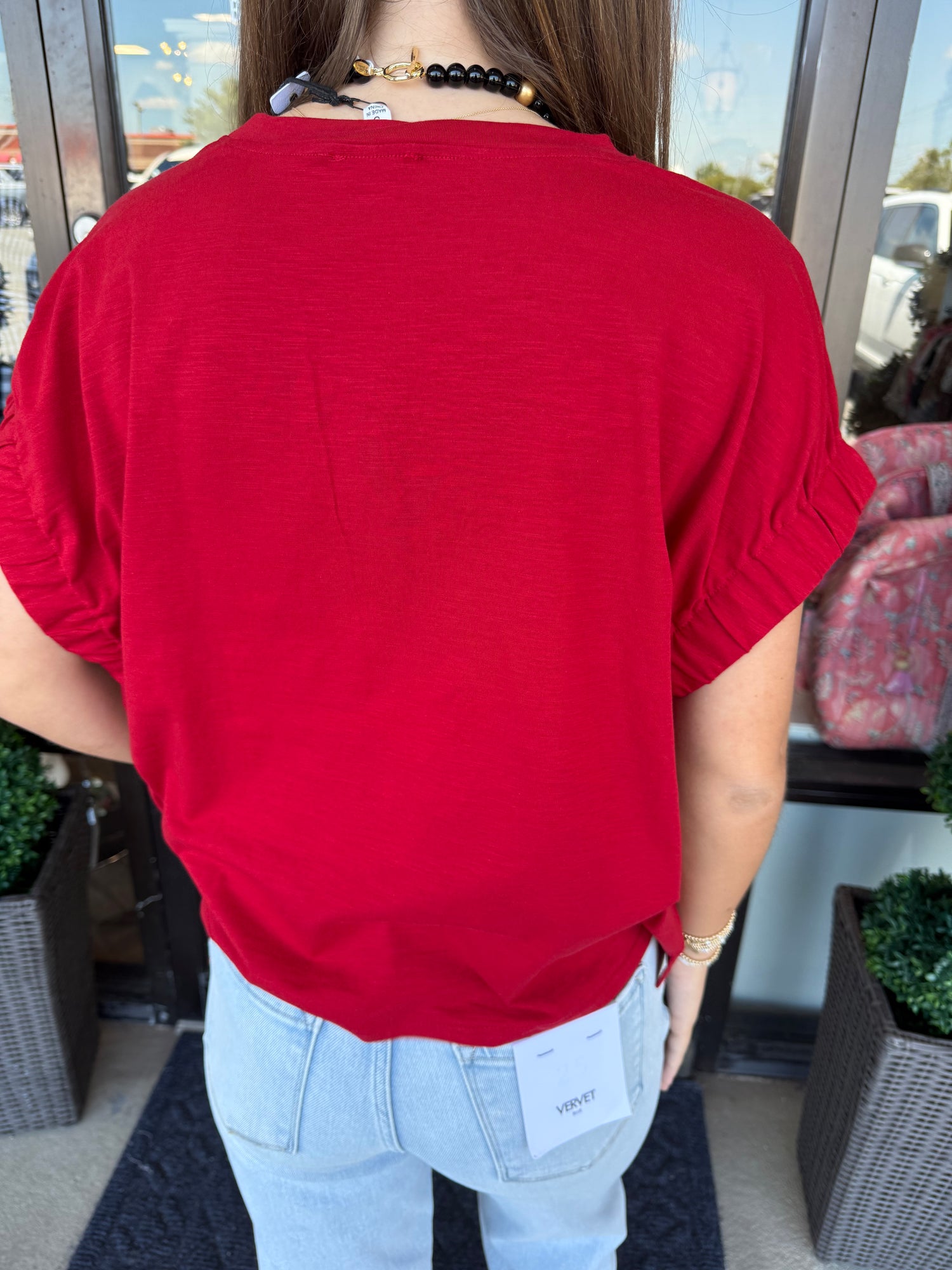 Elastic Sleeve Top: Dark Red