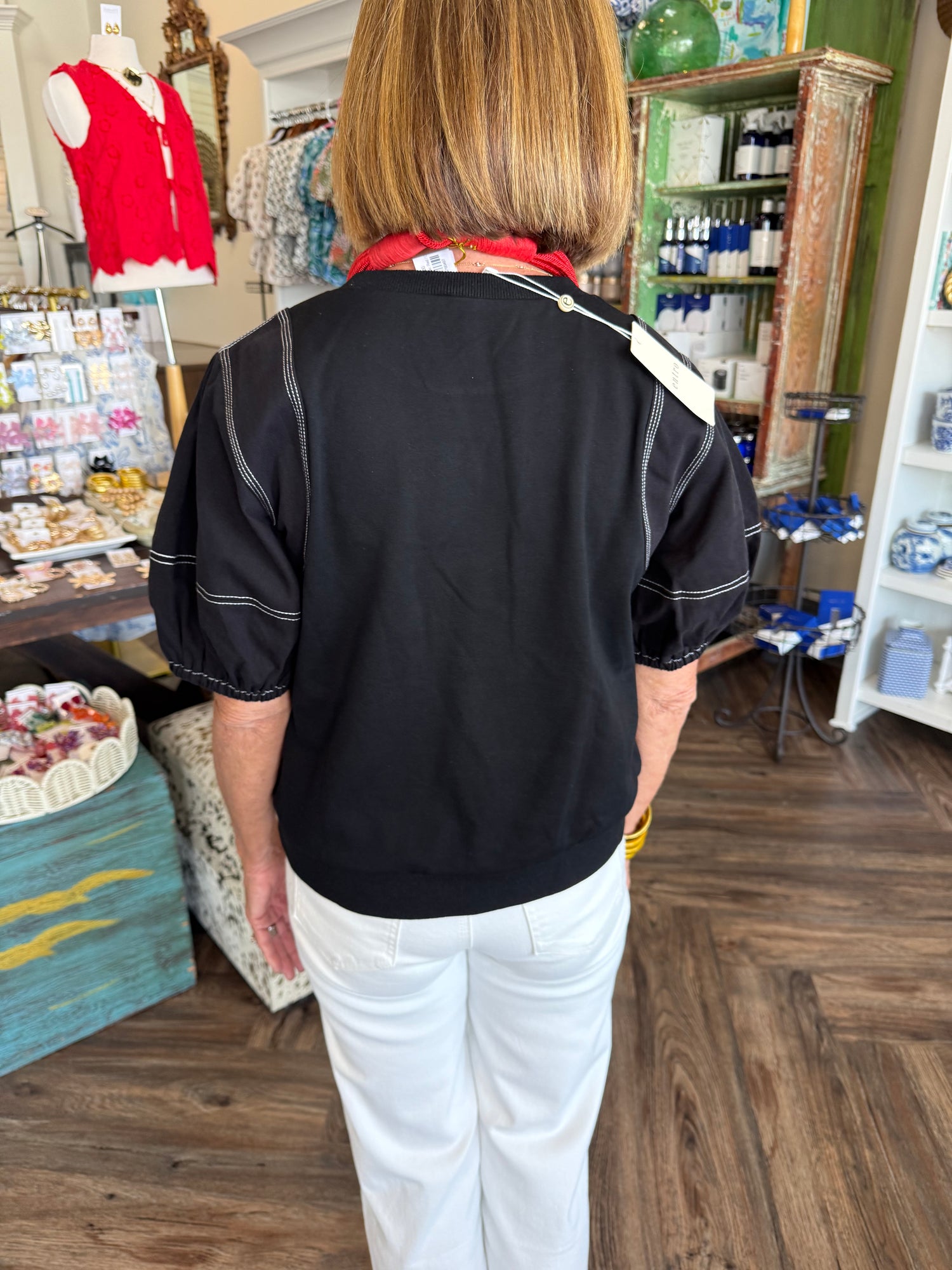 Exposed Stitch Black Top
