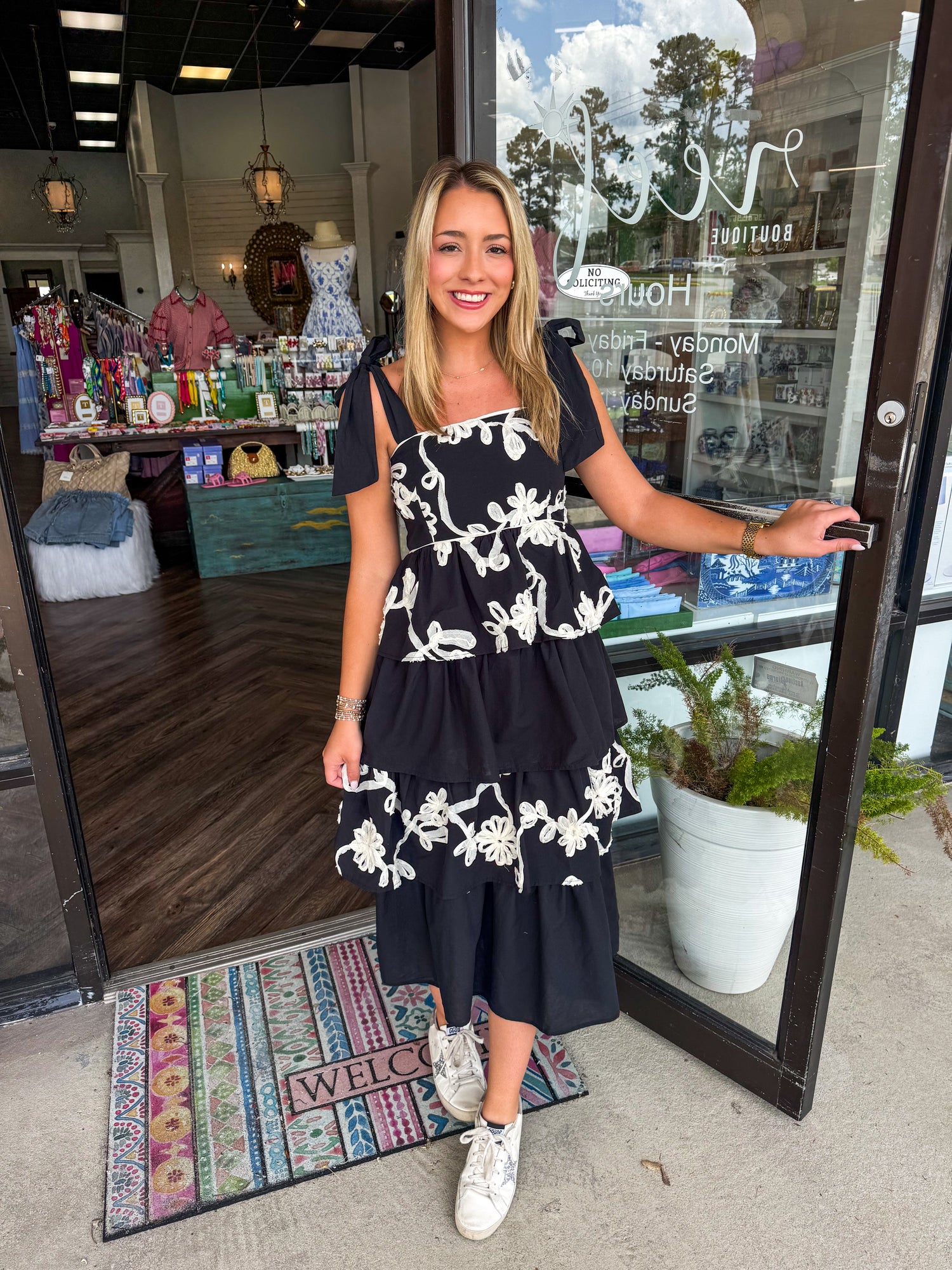 Floral Applique Tiered Midi Dress
