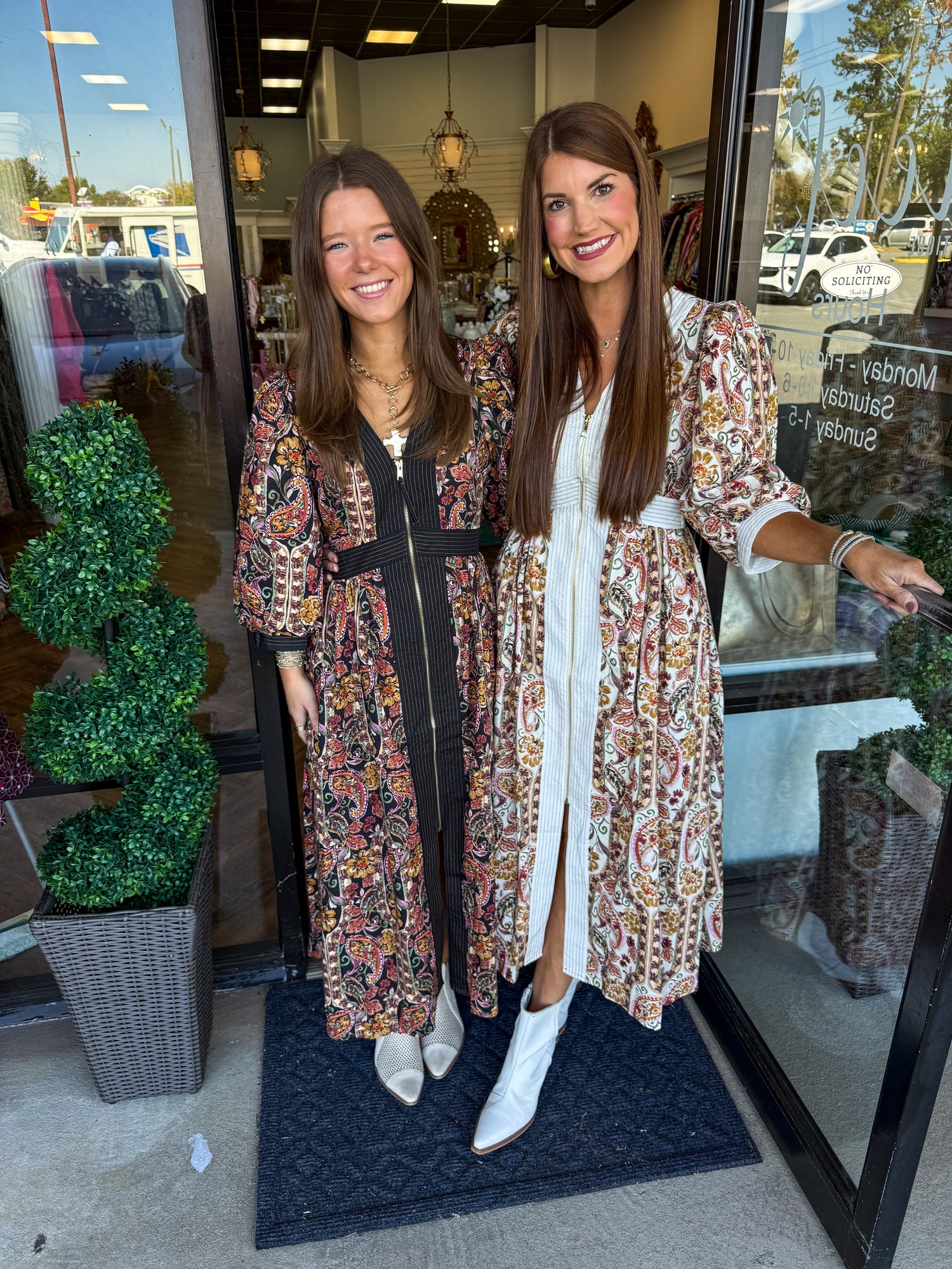 Floral Paisley Zip Midi Dress: Black