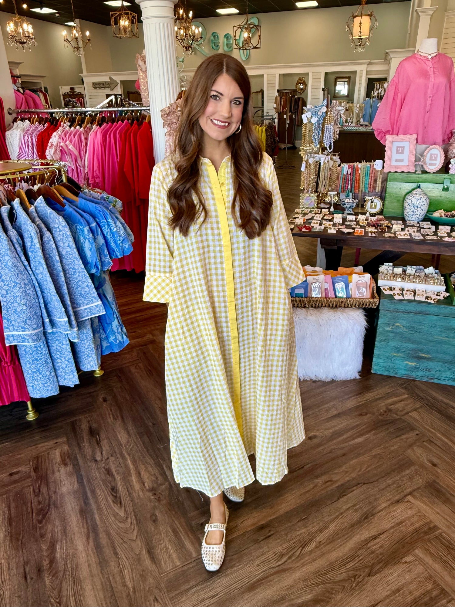 Gingham Midi Dress: Lemon