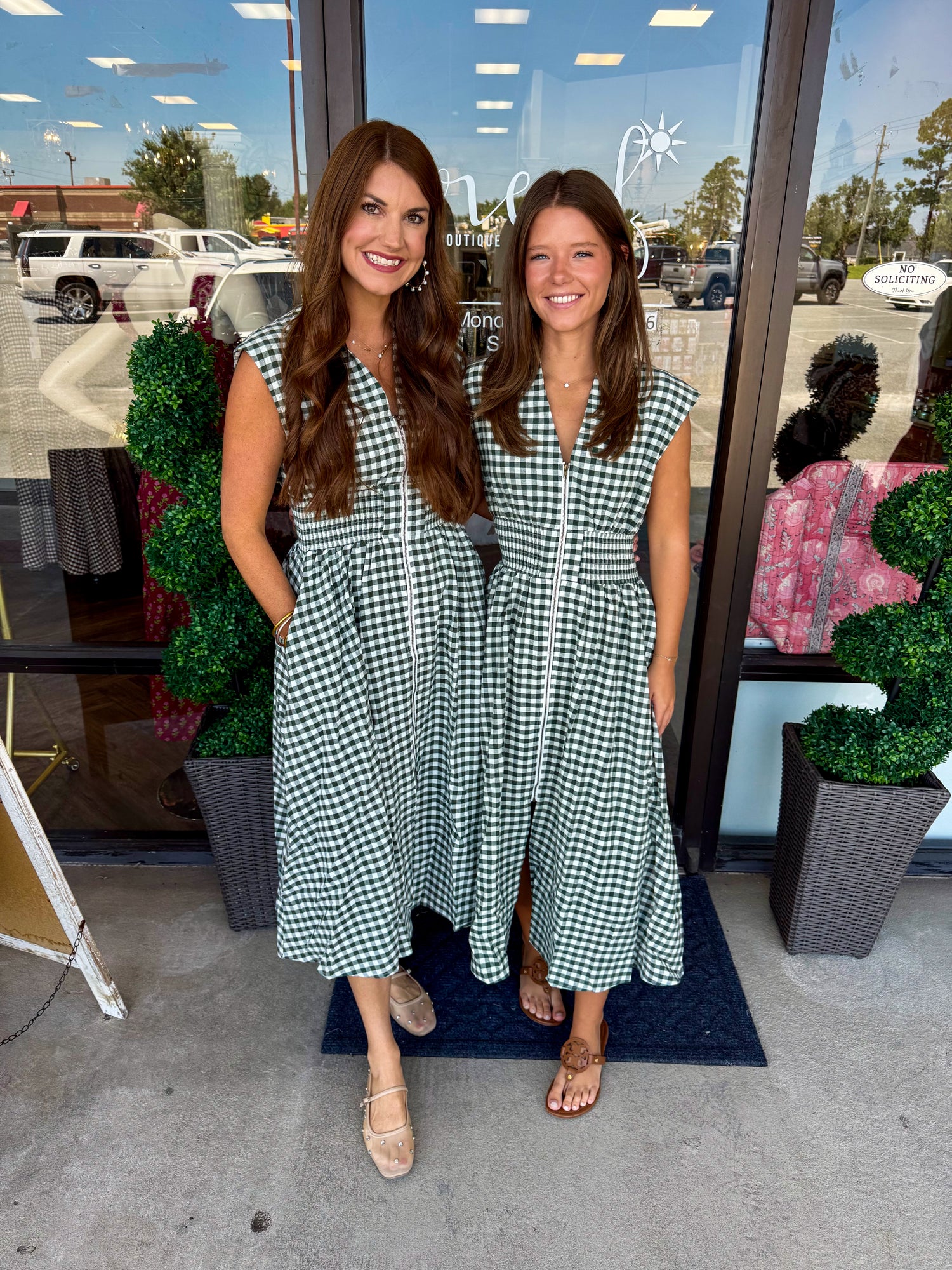 Gingham Zipper Midi Dress: Forest
