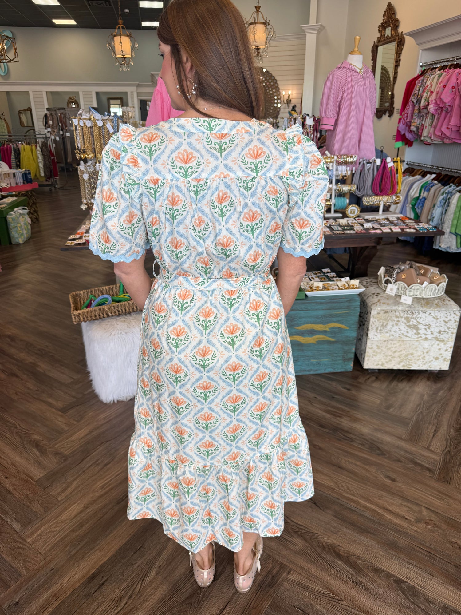 Kaleigh Apricot Floral Midi Dress