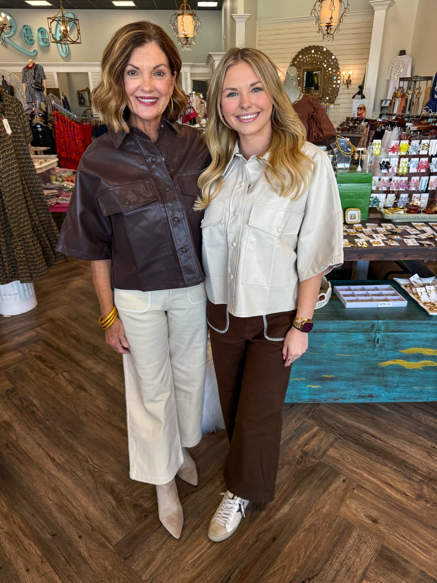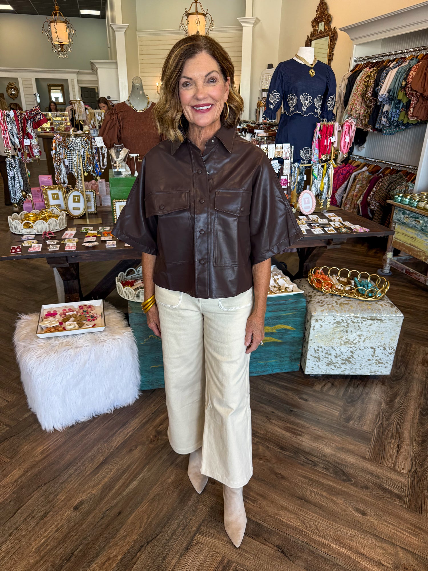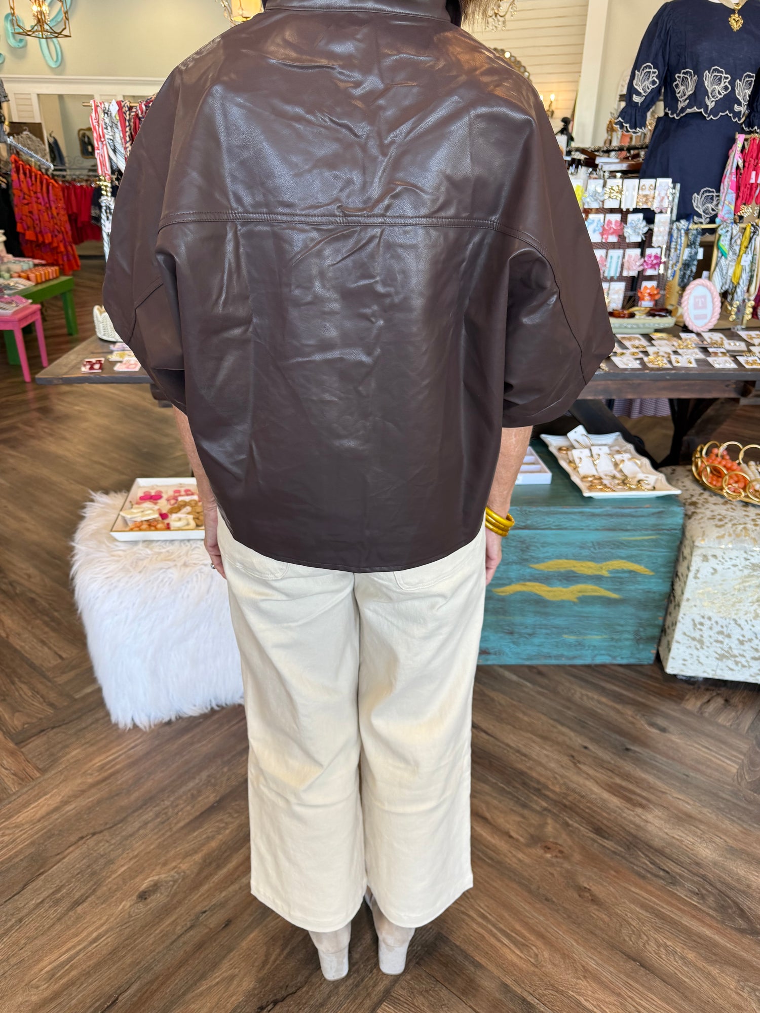 Leather Button Top: Brown