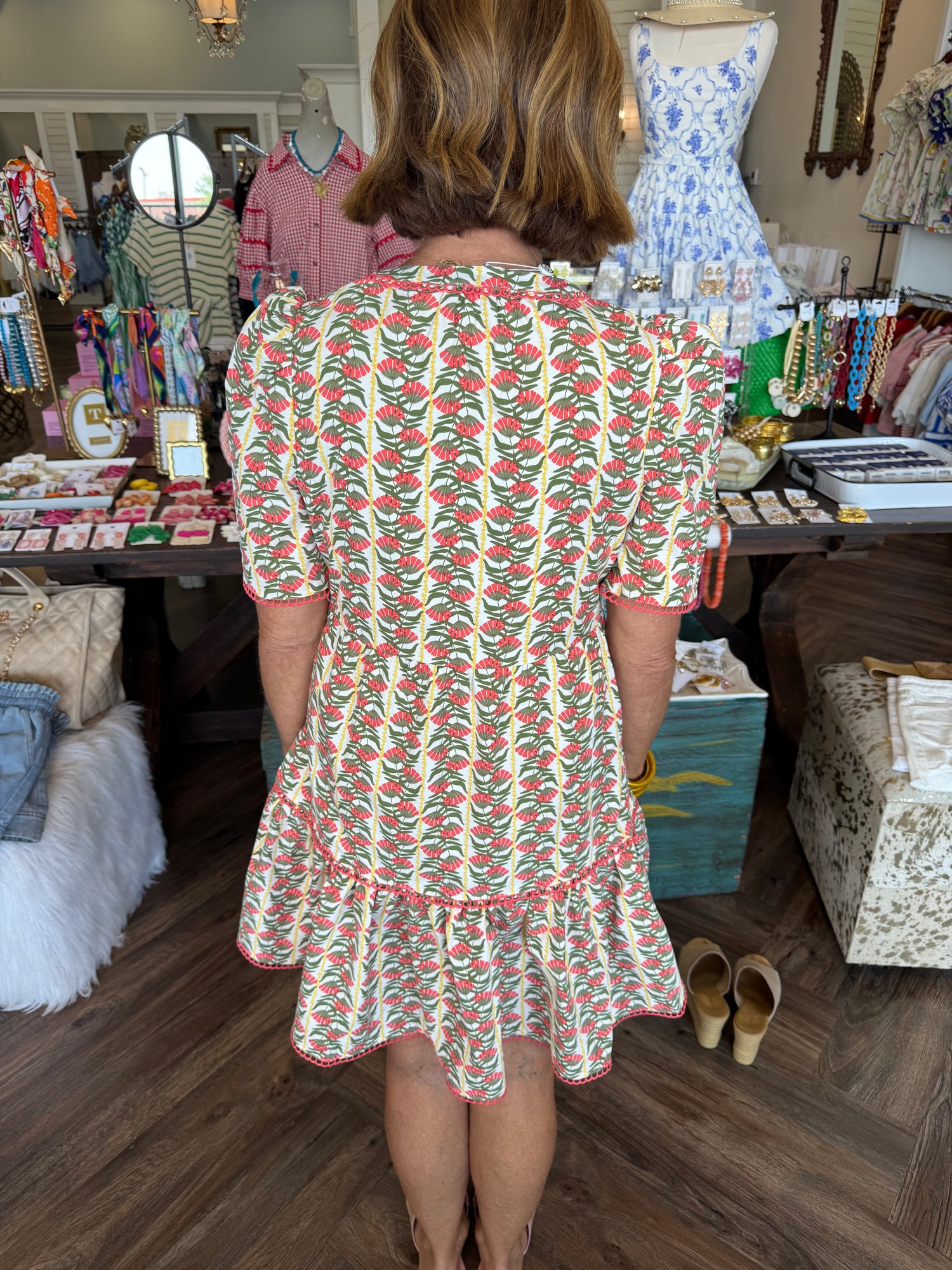Mary Square Adelyn Dress: Honey Vines - Coral
