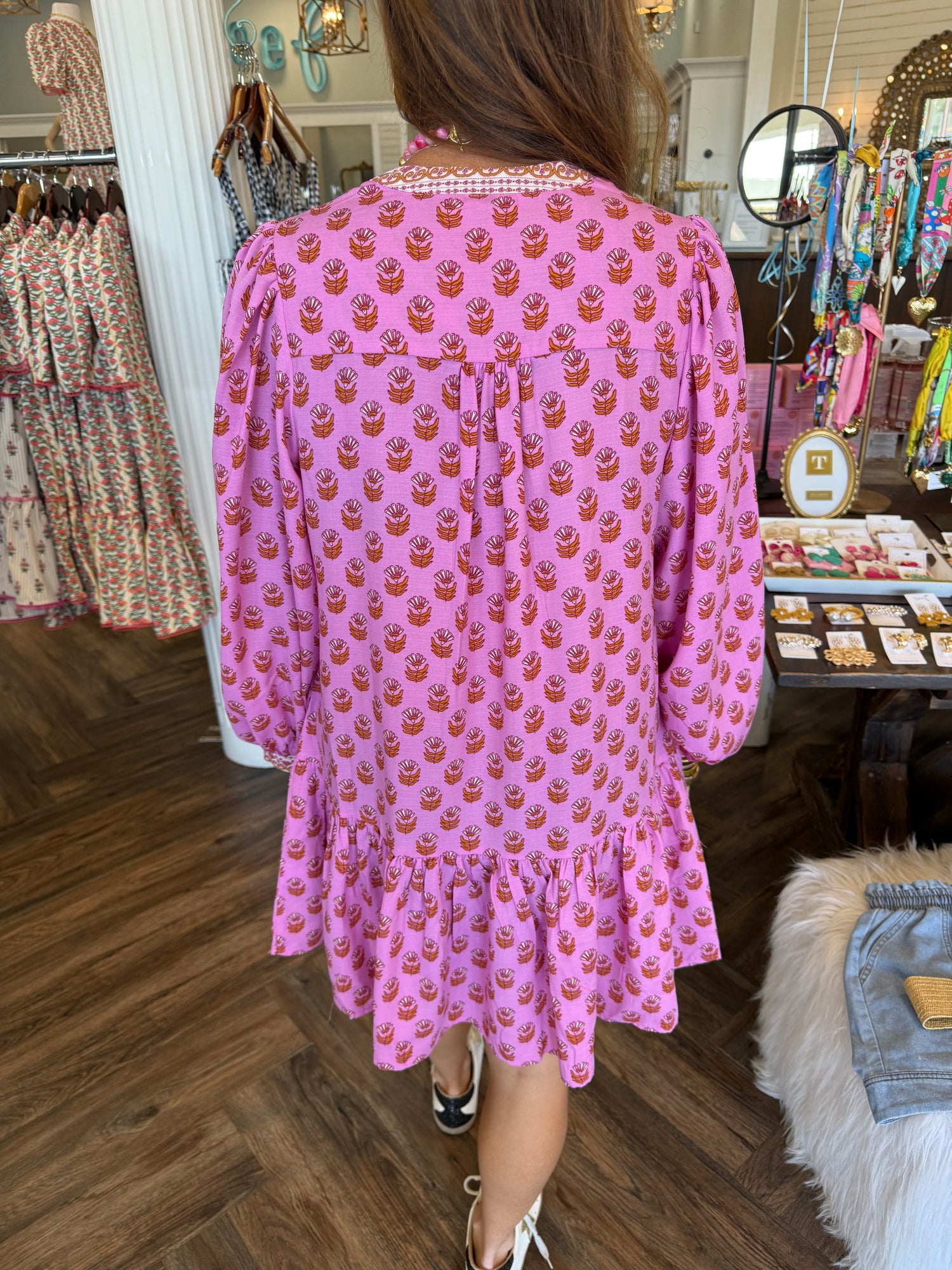 Mary Square Natasha Dress: Floral Foulard Pink