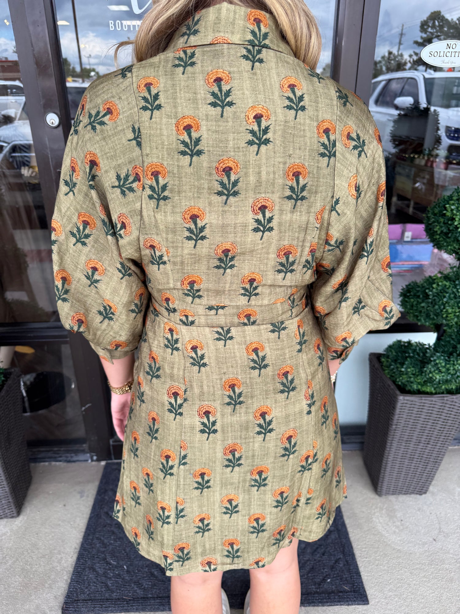 Olive Dandelion Tie Dress