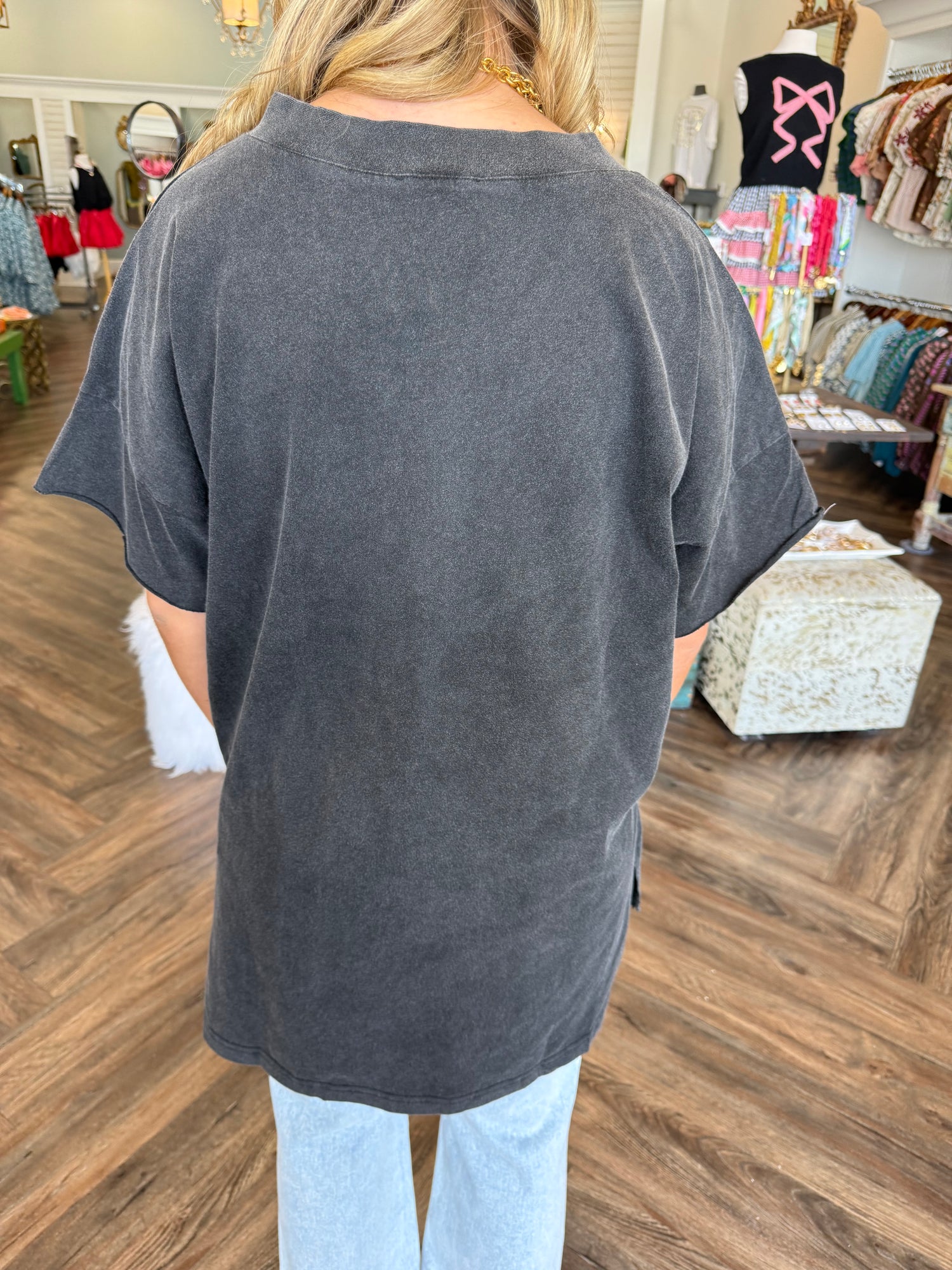 Oversized Basic V-Neck Top: Black