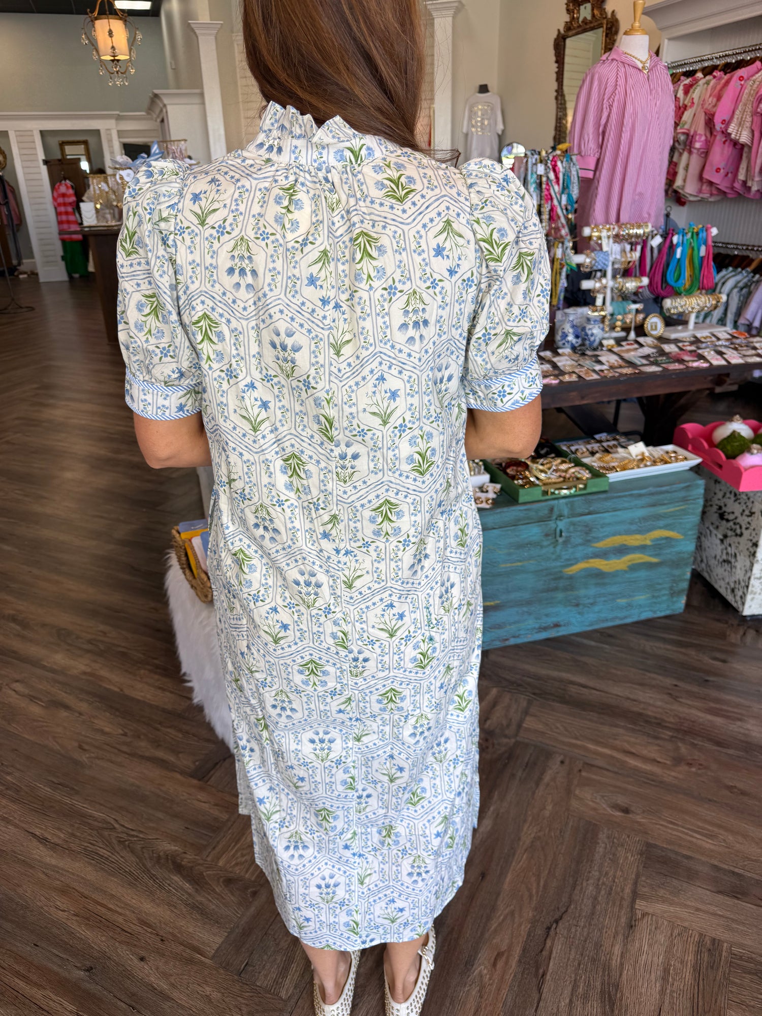 Painted Art Blue Flower Midi Dress