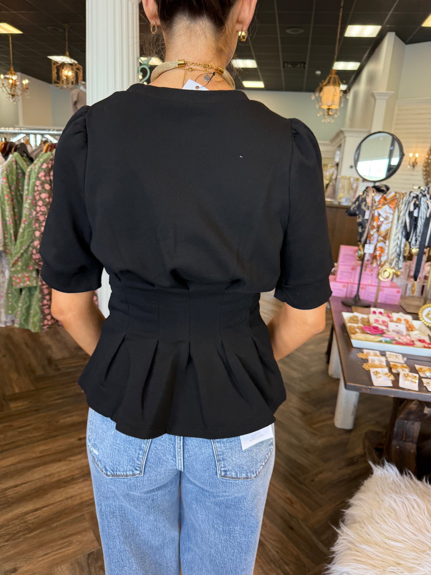 Pleated Waist Top- Black