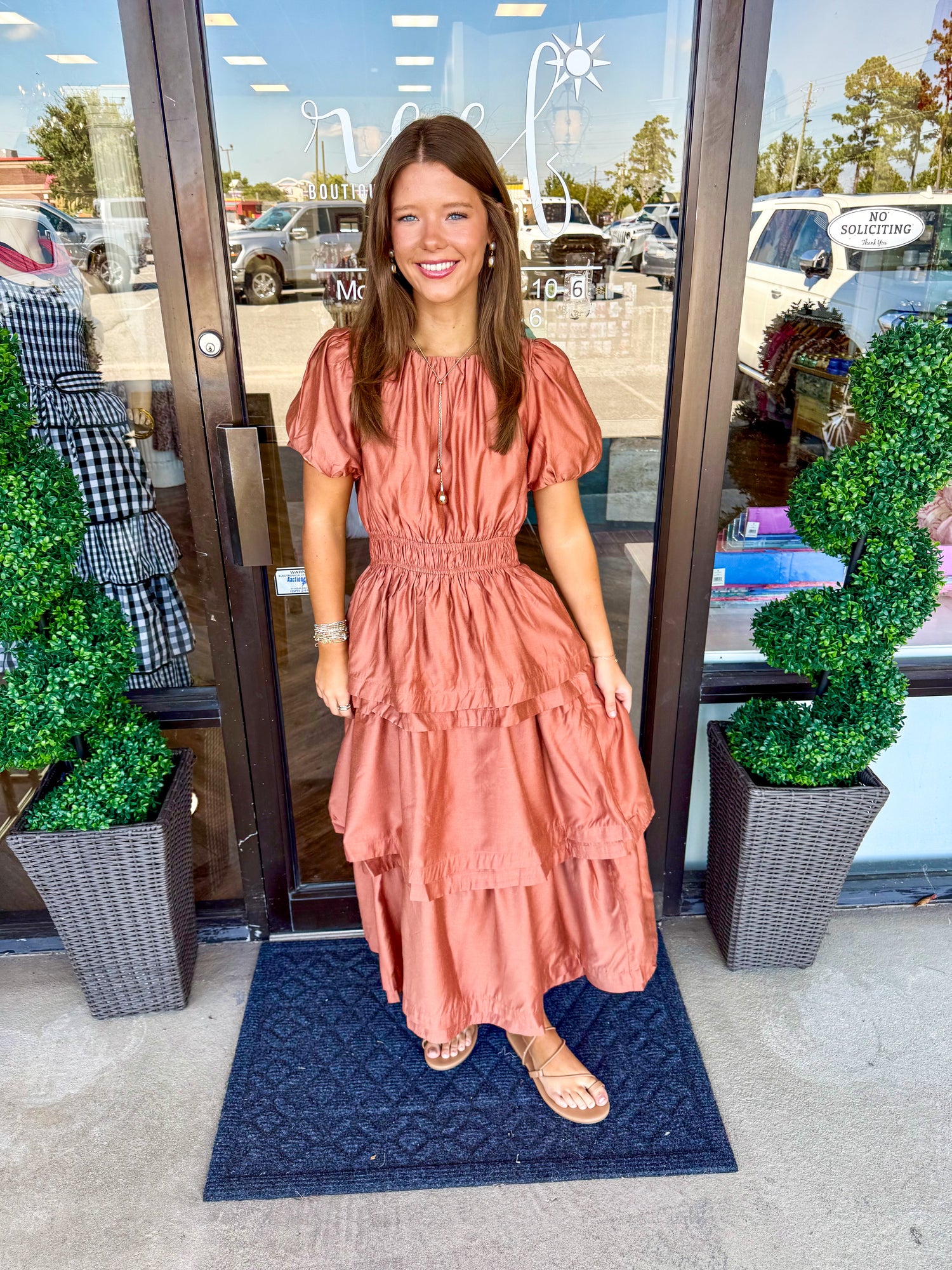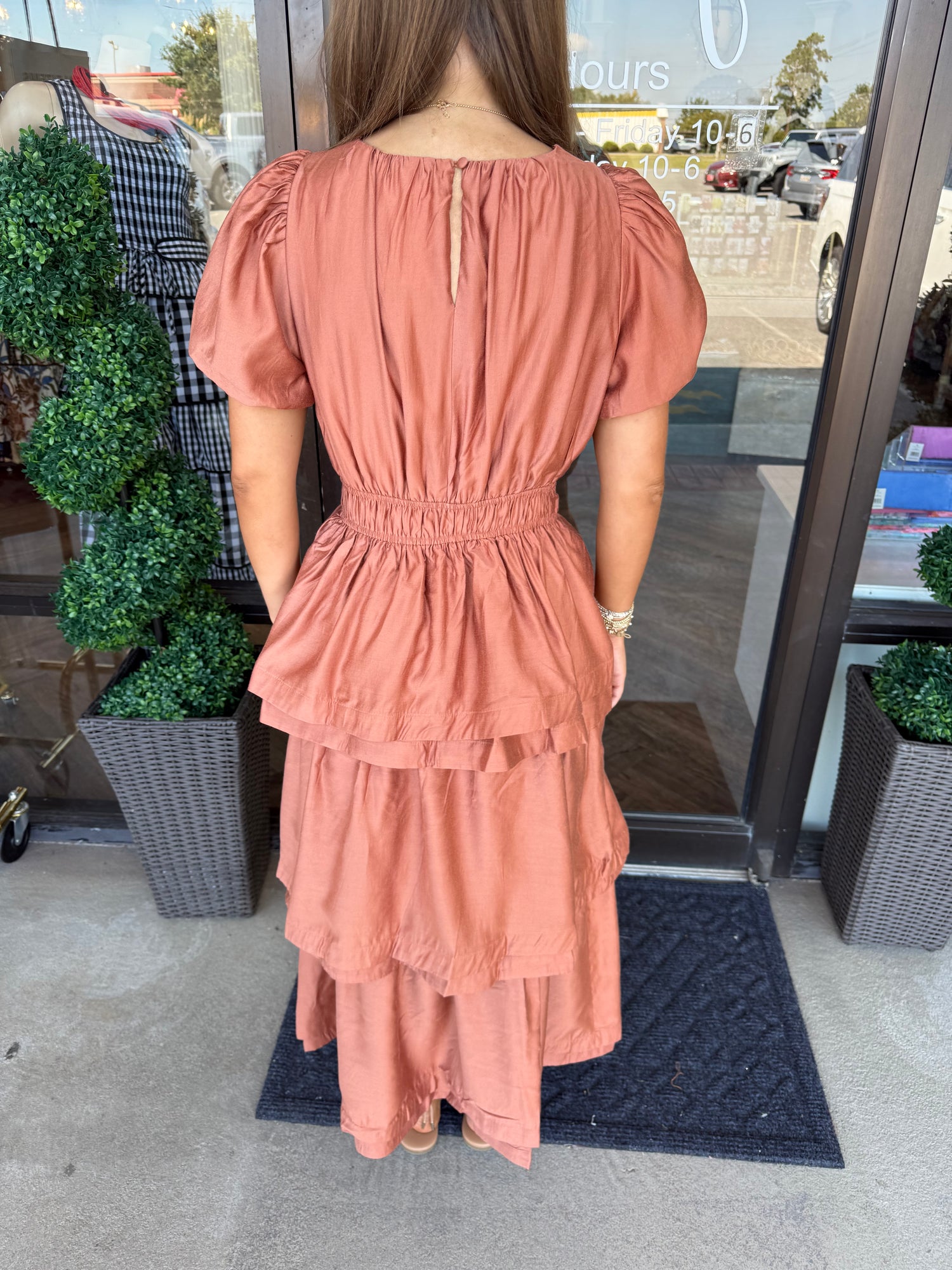Rust Tiered Midi Dress