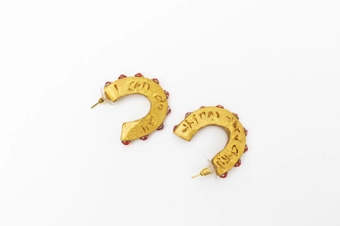 Fun, lightweight and fills you with joy describe these beautiful golden hoops! Wear them day to night and hold the truth that brings great joy near to your heart & mind. Be reminded that it's God's strength not yours that sustains you and helps you overcome any and every situation!