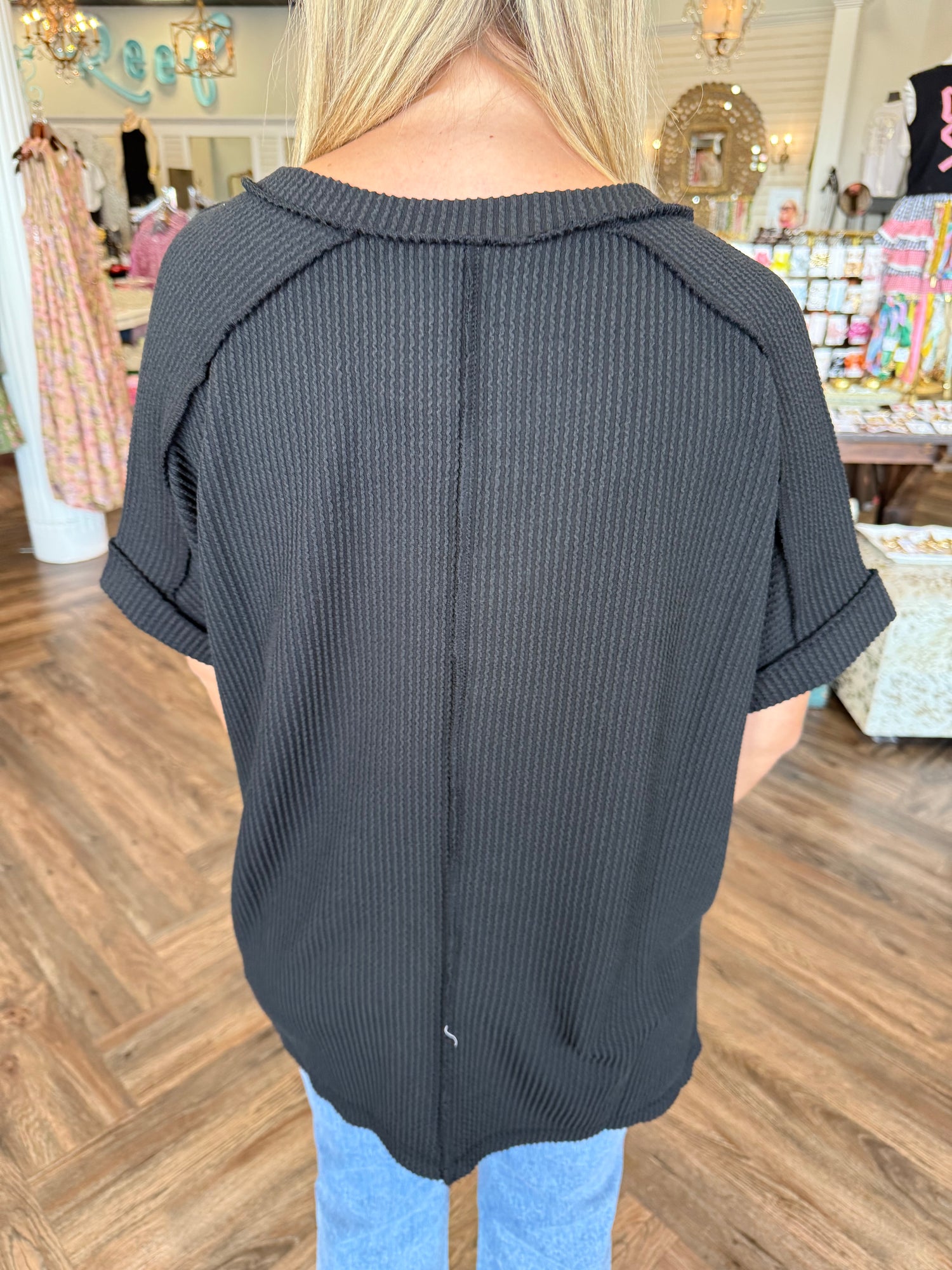 V-Neck Corded Top- Black